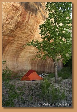 Trekking-Neulingen möchte ich daher raten, es zunächst einmal ganz gemütlich mit "Car Camping" angehen zu lassen. Man schlägt sein Zelt direkt am Trailhead neben dem Auto auf, spart 50 Dollar (oder mehr) für das Motel und kann am nächsten Tag früh aufbrechen. Die erste richtige Trekkingtour sollte nicht mehr als zwei Nächte umfassen. Vielleicht findet sich ja eine schöne Wanderung, die in nur 3 oder 4 Stunden zu einem geeigneten Basecamp führt, von wo man am nächsten Tag einen Ausflug mit leichtem Gepäck machen kann. Am dritten Tag geht es dann auf bekanntem Weg wieder zurück in die Zivilisation.
